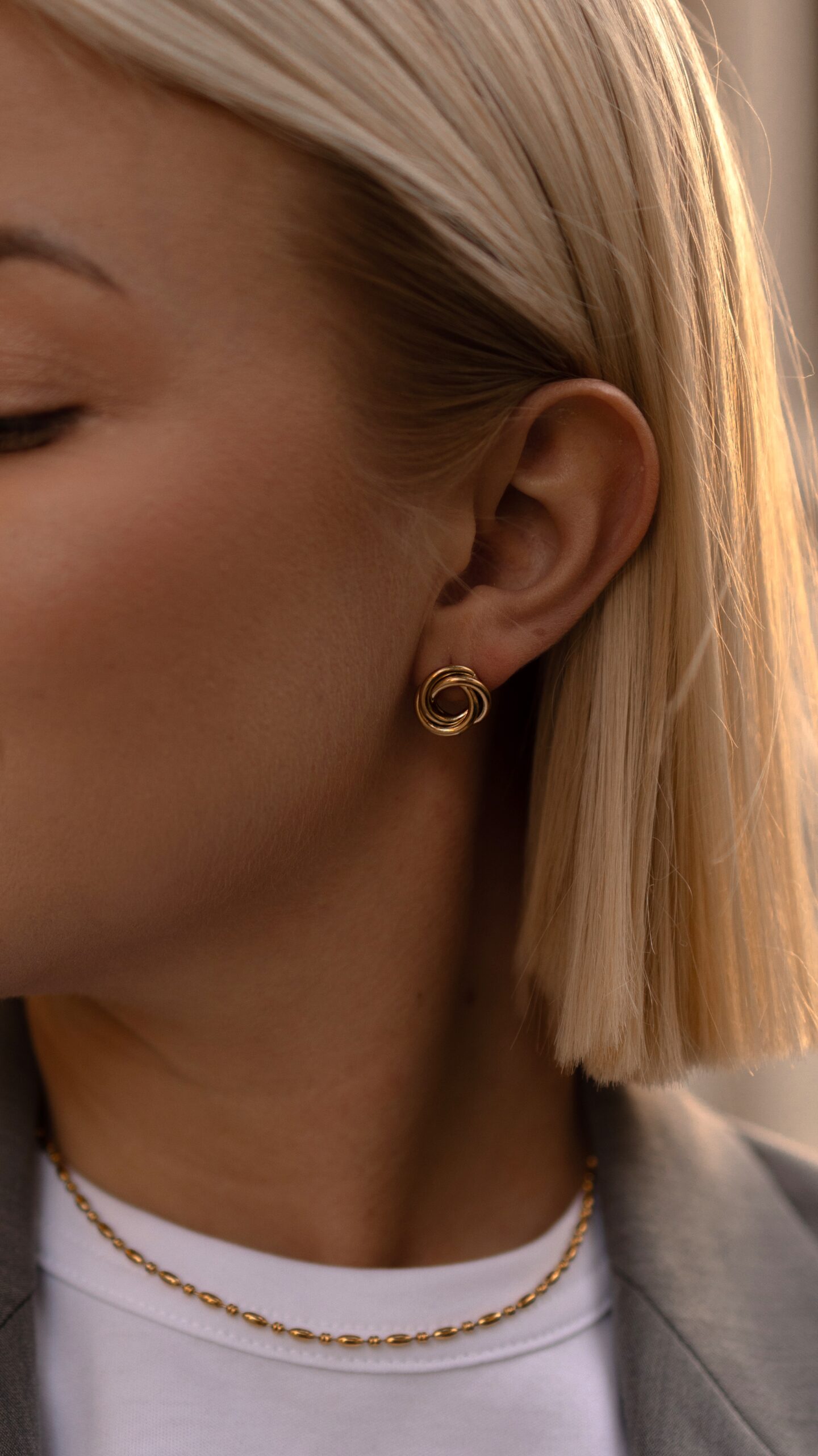 Unikatowy wzór kolczyków, który zostały wykonany z pozłacanej stali szlachetnej najwyższej jakości, która nie uczula i nie ciemnieje nawet podczas kontaktu z wodą, przepięknie prezentują się na uchu.